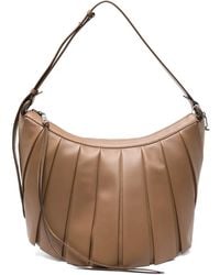 Go to FARFETCHBrown pleated design top zip fastening top handle adjustable shoulder strap logo detail Size: One Size. Gender: Unisex. Material:Sheepskin/Polyamide/Polyester/Polyamide. Colour: brown