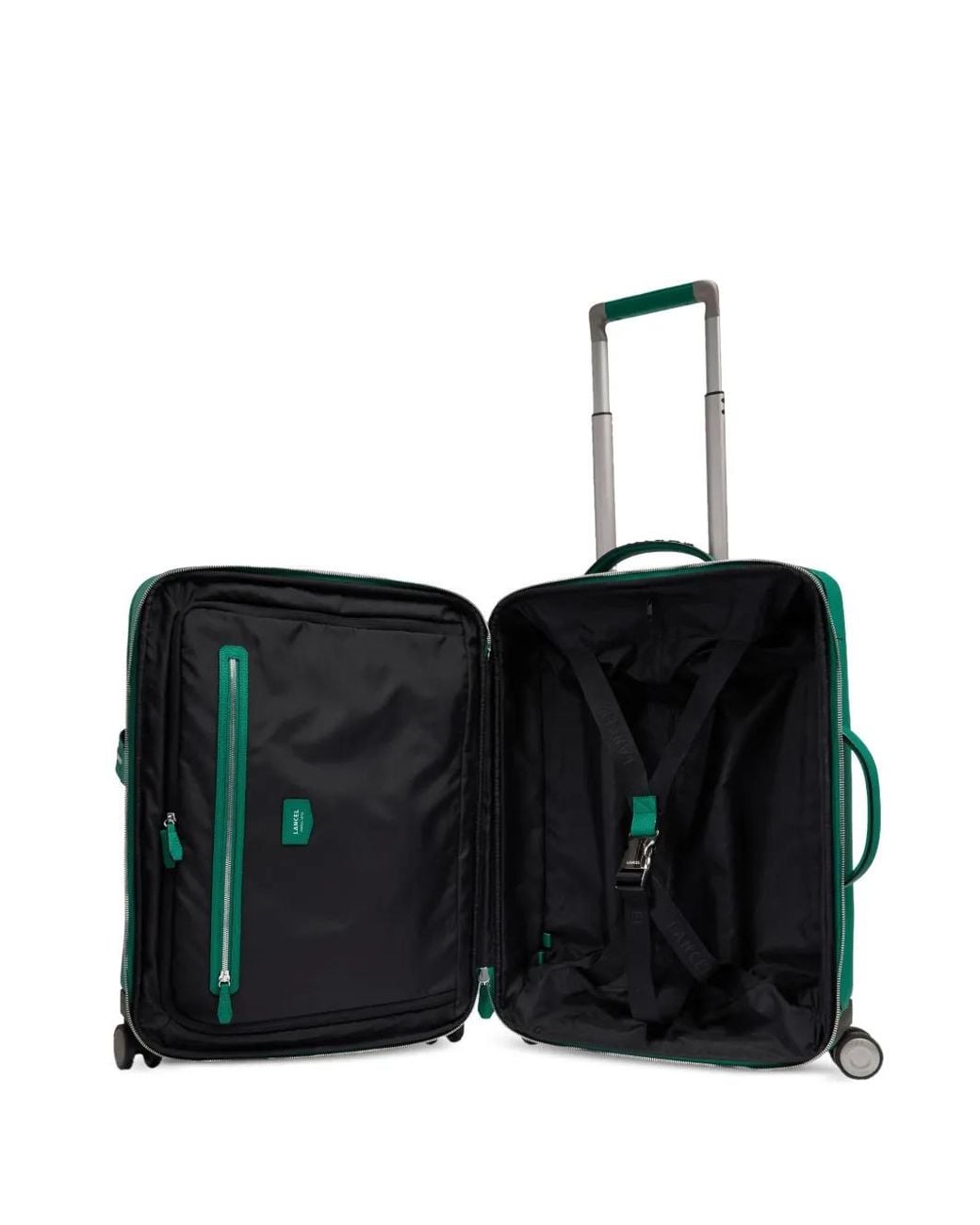 Green leather body top handle retractable handle four wheels logo detail Size: One Size. Gender: Unisex. Material:Recycled Polyester/Calf Leather. Colour: black