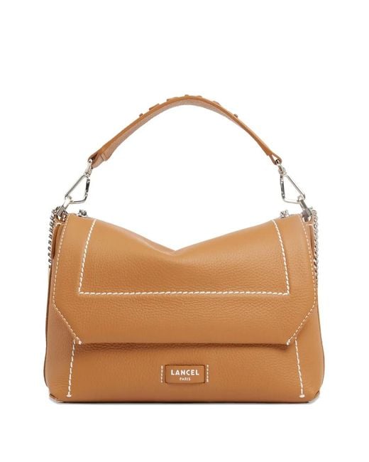 Brown leather contrast stitching stamped metallic-logo detachable chain-strap top handle Size: One Size. Gender: Female. Material:Leather/Nylon. Colour: brown