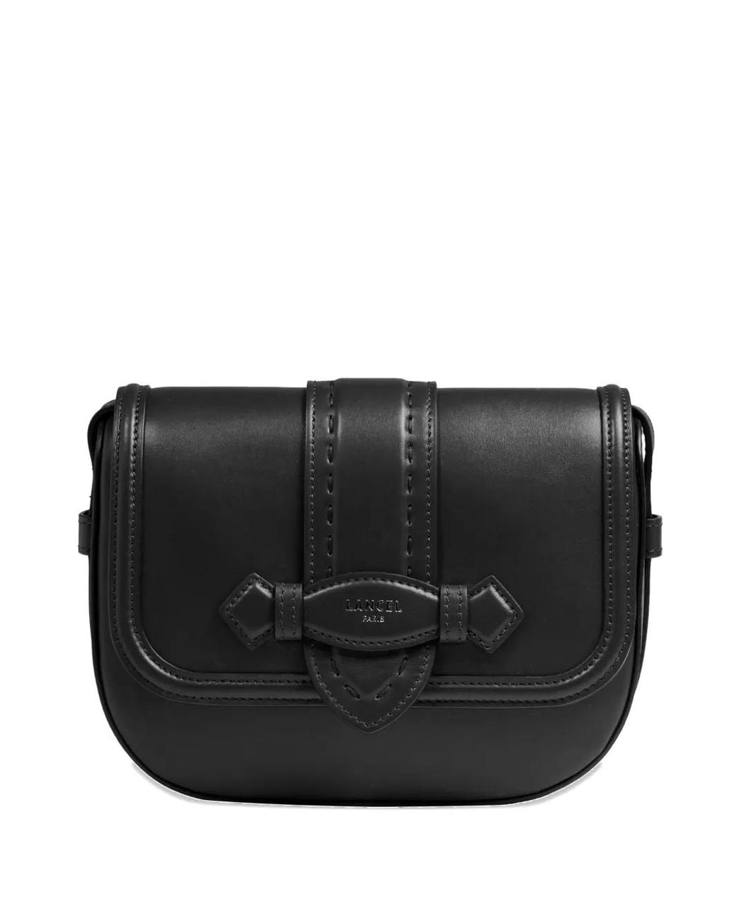 Black leather construction central-flap detail decorative stitching bow-shaped clasp adjustable shoulder strap Size: One Size. Gender: Female. Material:Leather/Nylon. Colour: black