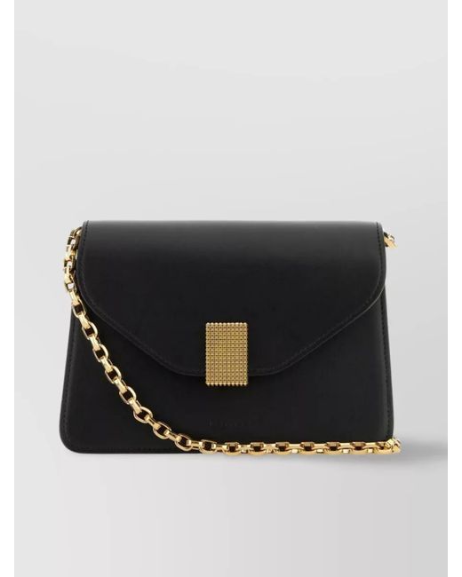 Smooth calf leather | Detachable metal chain shoulder strap | Metal detail on the flap | Gold-tone hardware | A credit card slot | Lined interior with three compartments | Two slit pockets | Logo detail | Magnetic band closure Colour: black