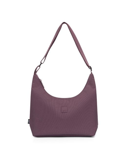 Our bag with a subtle crescent shape, offering a modern silhouette that provides both style and ease of carrying. Despite its compact size, the bag offers ample space for your essentials. It features an adjustable strap, an easy zip closure and one zipped inner pocket to make sure you can keep your belongings organized. Its Oxford rpet makes it lightweight, water resistant and vegan. Wash cold. Air dry. See our care guide for more information. Its quilted rpet makes it lightweight, water resistant and vegan. Wash cold. Air dry. See our care guide for more information. Colour: purple