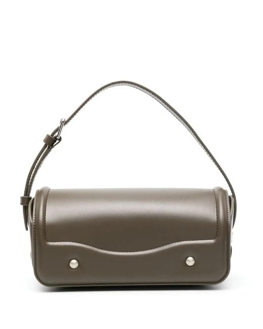 Khaki calf leather adjustable detachable shoulder strap logo-debossed patch to the rear silver-tone stud detailing main compartment internal logo patch canvas lining foldover top with magnetic fastening Size: One Size. Gender: Female. Material:Calf Leather/Cotton. Colour: grey