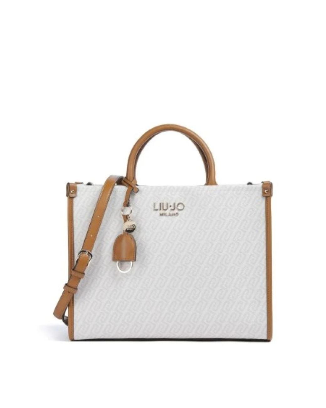 Liu Jo Ridhi Handbag pairs a structured silhouette with dual top handles and a removable shoulder strap. Ideal for everyday carry, it combines logo detailing with practical features for daily use. Key attributes: Beige | Naturale | Sequoia | Faux leather | Double top handles | Zip closure | Removable charm | Adjustable and removable shoulder strap | Protective metal feet | Logo detail | Structured silhouette | Metal hardware | Composition & care: Polyurethane (faux leather) | Metal Colour: white