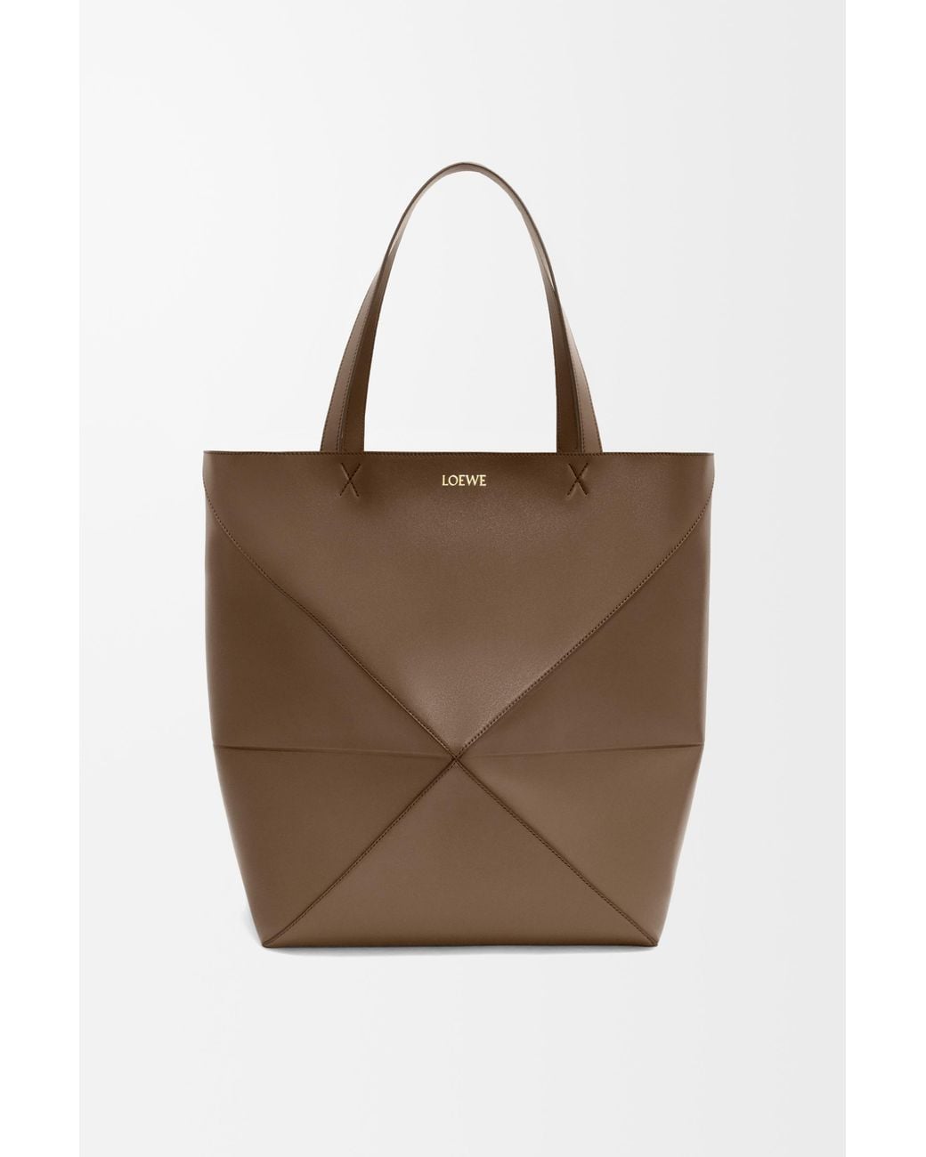 The Puzzle Fold's lightweight geometric structure is designed to fold completely flat, making it a perfect tote to travel with. This XL version is crafted in shiny calfskin.*Shoulder or hand carry *Suede lining *Gold embossed LOEWE
