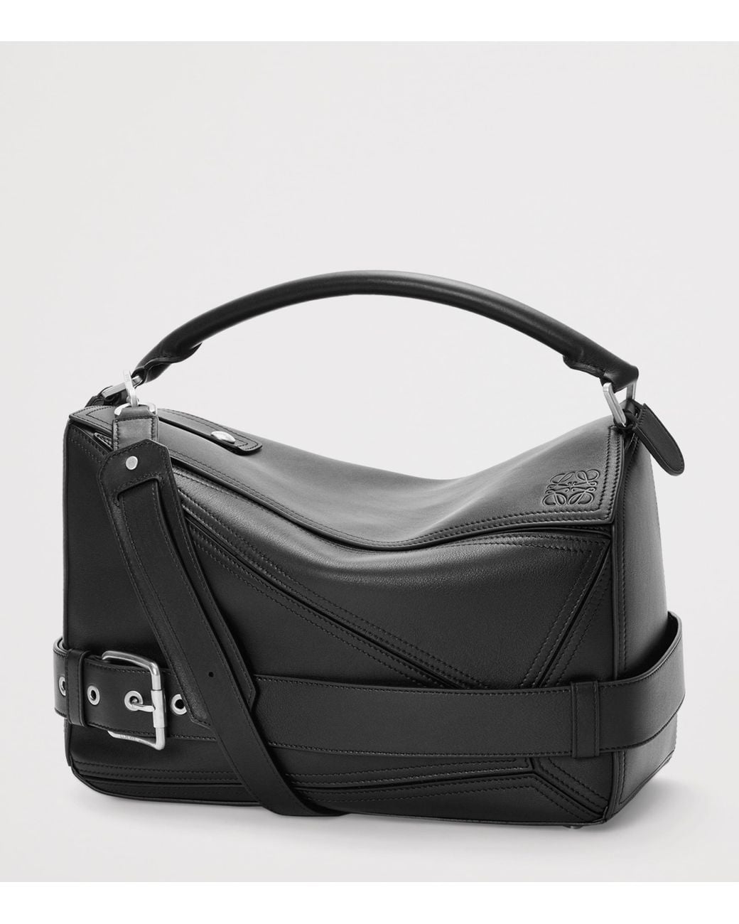 Men's Black Large Leather Puzzle Biker Top-Handle Bag