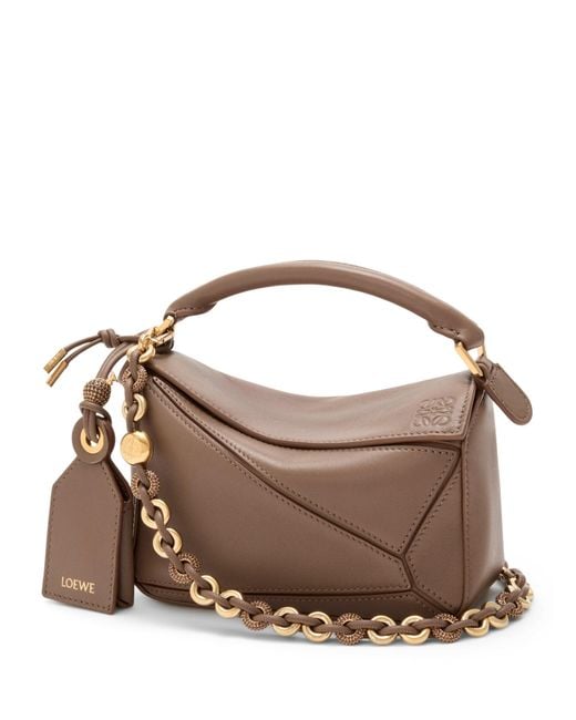 Women's Brown Mini Leather Puzzle Top-Handle Bag