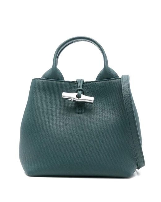 Blue calf leather grained texture T-bar fastening two rolled top handles adjustable detachable shoulder strap main compartment debossed internal logo internal card slots internal zip-fastening pocket internal patch pocket logo-jacquard lining This piece comes complete with a protective dust bag. Size: One Size. Gender: Female. Material:Calf Leather. Colour: blue