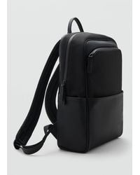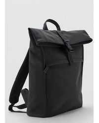 Mango Men's Black Rubberized Backpack With Flap Closure