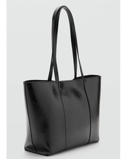Faux Leather Shopper Bag - Black