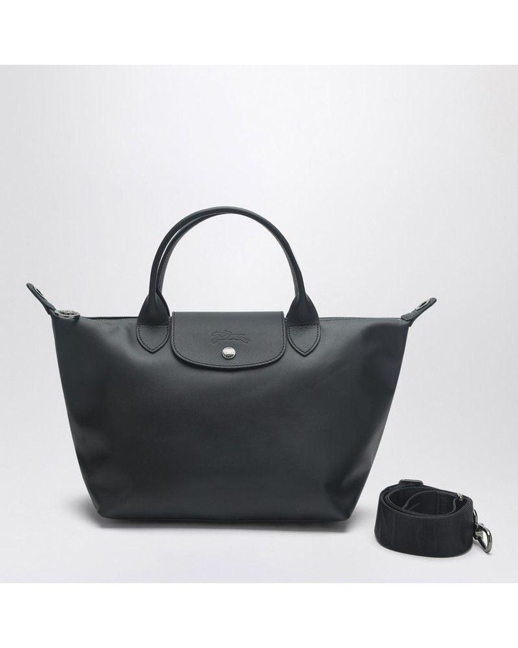 Black recycled polyamide bag featuring a zip and snap button flap closure, a removable and adjustable shoulder strap, an internal flat pocket with zip and tone-on-tone embossed logo on the front.SpecificationValueSeasonSS26Composition100% RECYCLED POLYAMIDE / LEATHER DETAILSColorBLACKColor Code001Made InTUNISIAISOTNDepartmentWomenSectionBAGSSubsectionHANDBAGSSize InformationONE SIZESize CodeOS