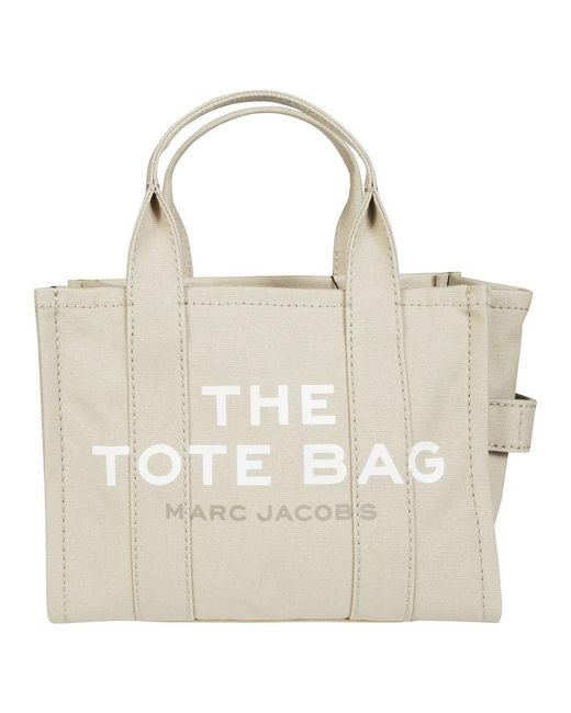 Marc Jacobs The Small Tote is a compact canvas tote designed for everyday carry. It pairs a secure zip top with an adjustable crossbody strap for hands-free convenience. Key attributes: Beige | Canvas | Zip closure | Adjustable crossbody strap | Double top handles | Contrast logo lettering on front | Compact rectangular silhouette | Dimensions & fit: W 26 x H 20 x D 12 cm | One size | Composition & care: 100% cotton | Spot clean with a damp cloth; avoid bleach and tumble drying.