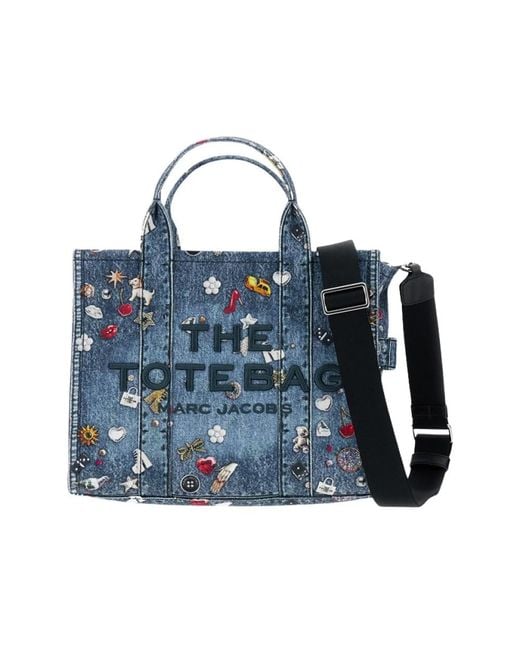 Marc Jacobs Trompe L'oeil Medium Tote pairs a graphic trompe l'oeil print with a cotton canvas construction for a stylish everyday carry. The top zip closure and removable shoulder strap make it easy to switch between handheld and hands-free wear. Key attributes: Blue | Cotton | Top zip closure | Removable shoulder strap | Two carrying handles | Interior pocket | Trompe l'oeil graphic print | Dimensions & fit: 34 cm length | 15 cm depth | 27 cm height | Handle height: 12 cm | Composition & care: Cotton Colour: blue