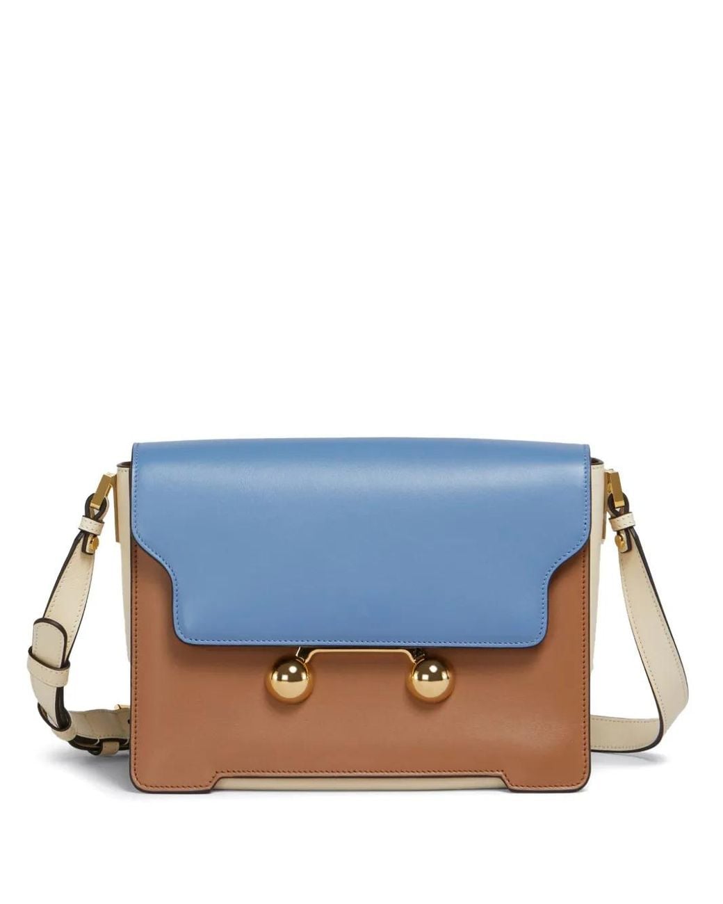 Blue foldover top with magnetic fastening adjustable shoulder strap main compartment colour-block design Size: One Size. Gender: Female. Material:Sheepskin/Steel/Brass/Calf Leather.