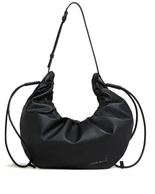 Black gathered detailing adjustable shoulder strap main compartment logo lettering Size: One Size. Gender: Male. Material:Calf Leather. Colour: black