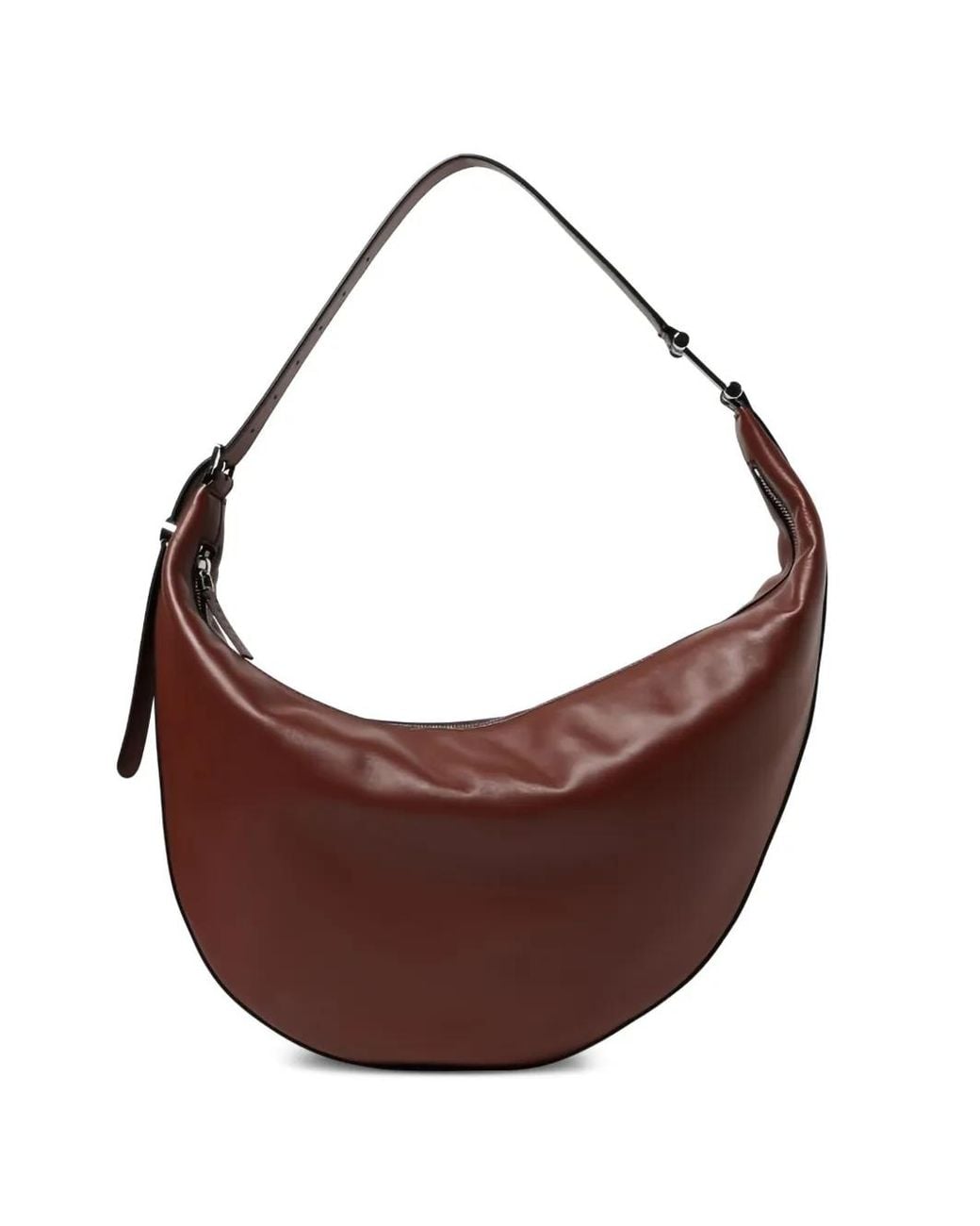 Brown leather round logo-engraved disc zip closure adjustable strap internal zip pocket Size: One Size. Gender: Female. Material:Calf Leather. Colour: brown