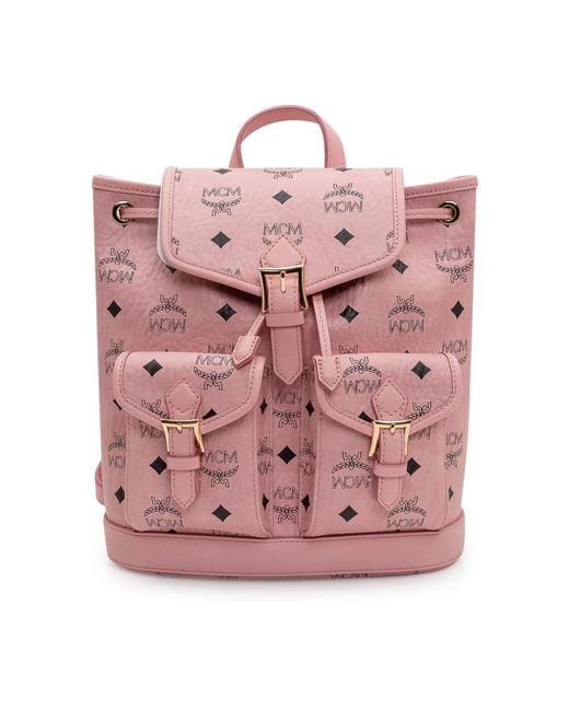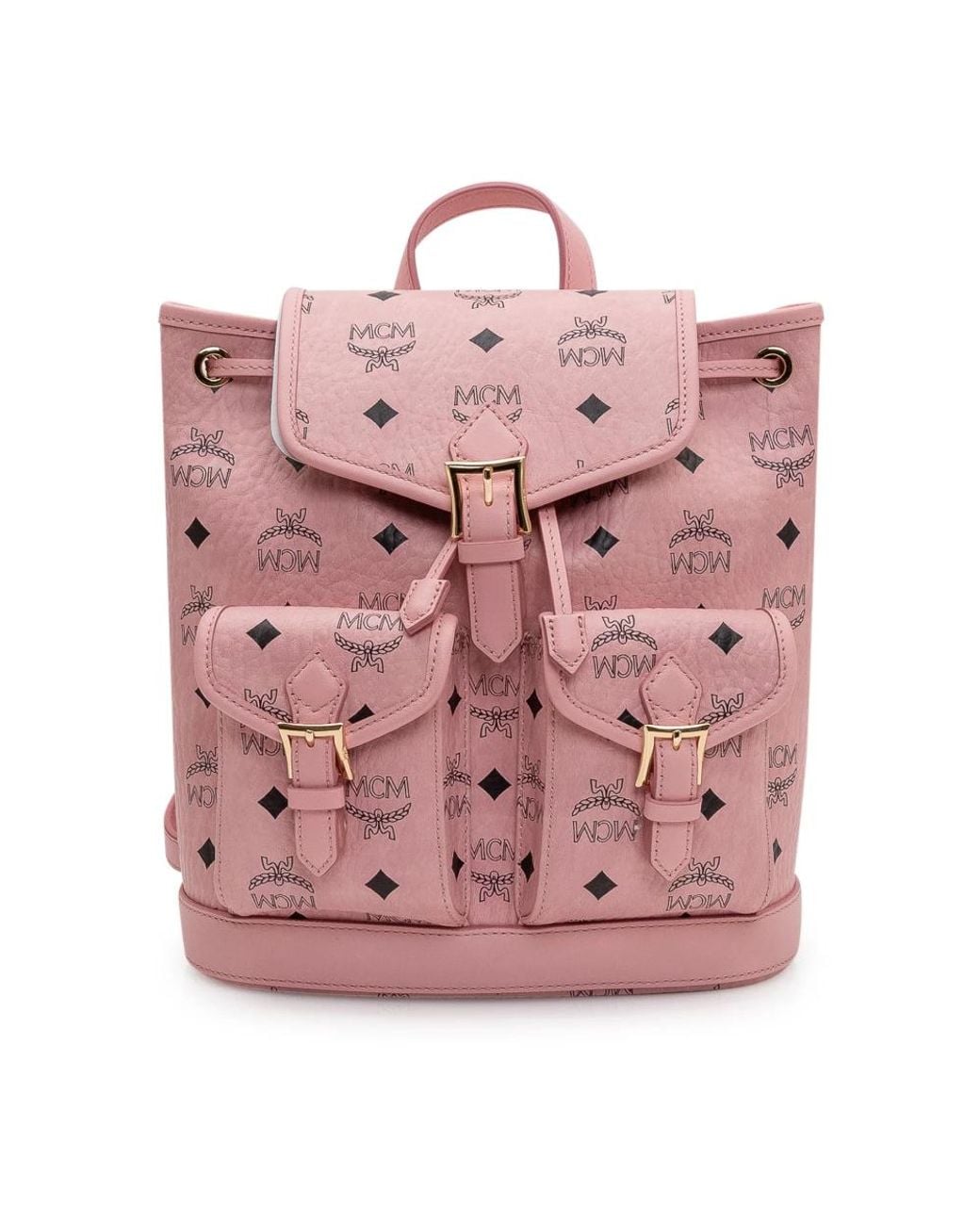 MCM Mini Aren Backpack combines a compact, structured silhouette with convertible carrying options, making it a versatile everyday companion. Key attributes: Pink | Soft pink | Visetos monogram canvas | Microfiber lining with suede finish | Durable coated canvas body | Gold-plated hardware | Detachable shoulder straps | Removable chain handle | Adjustable straps | Front flap pockets | Magnetic snap closure with leather drawstring | Interior slip pocket | Compact, structured silhouette | Drawstring bucket shape with flap | All-over monogram print | Buckle hardware inspired by Bavarian diamonds | Leather trim | Dimensions & fit: 9.45x 9.45x 4.33 | Composition & care: 63% Polyurethane | 17% Cotton | 20% Polyester | Leather trim Colour: pink