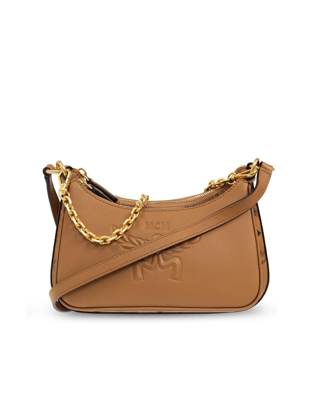 use. A sturdy zipper guarantees the safety of stored items. WHY SHOULD YOU BUY THIS PRODUCT? * A unique combination of classic design with a modern twist. * High-quality materials ensure durability and strength. * Gold chain and adjustable strap for maximum comfort. * Spacious interior with additional pockets for small items. * Iconic MCM logo adds prestige to any styling. Colour: natural