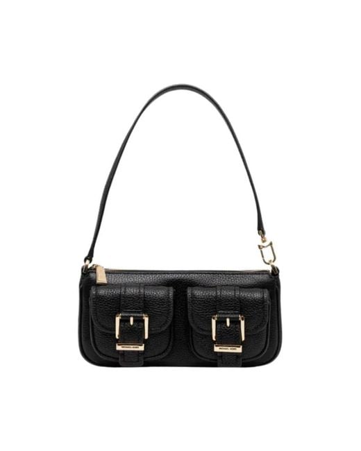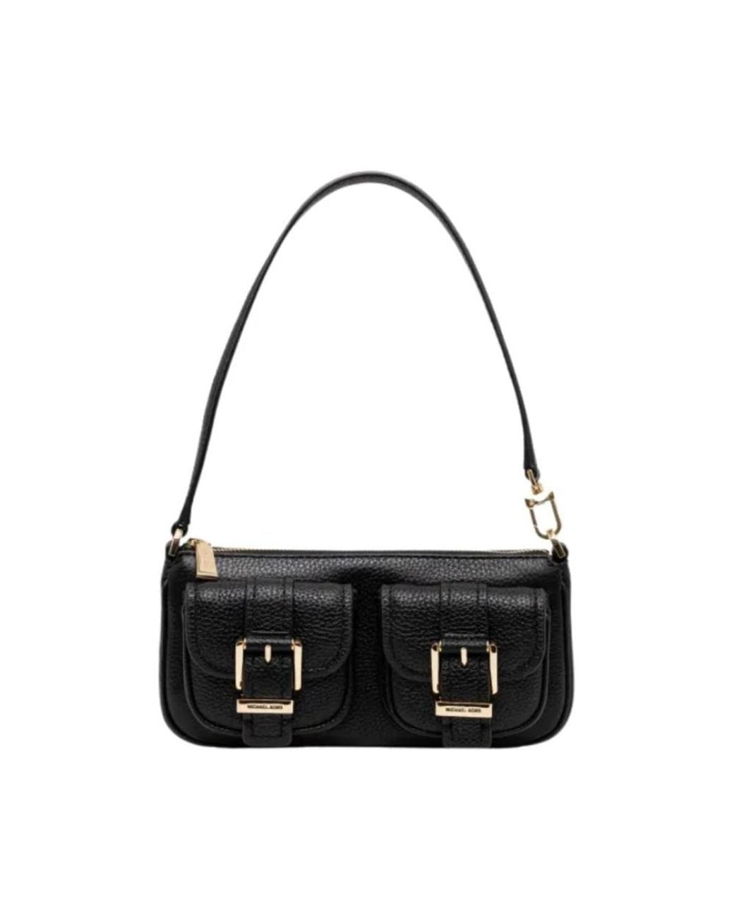 Michael Kors Zoe Small Pebbled Leather Pochette is a compact, structured shoulder bag designed to carry essentials with organized exterior pockets and a convertible strap for versatile wear. Key attributes: Black | Calf leather | Zip closure | Exterior front pockets | Convertible strap (shoulder or wristlet) | Pebbled texture | Structured silhouette | Gold-tone hardware | Buckle detailing | Dimensions & fit: Depth: 3 cm | Height: 11 cm | Width at base: 21 cm | Not compatible with A4 format | Composition & care: Outer: 100% calf leather | Lining: 100% polyester | Wipe clean with a dry cloth. Colour: black