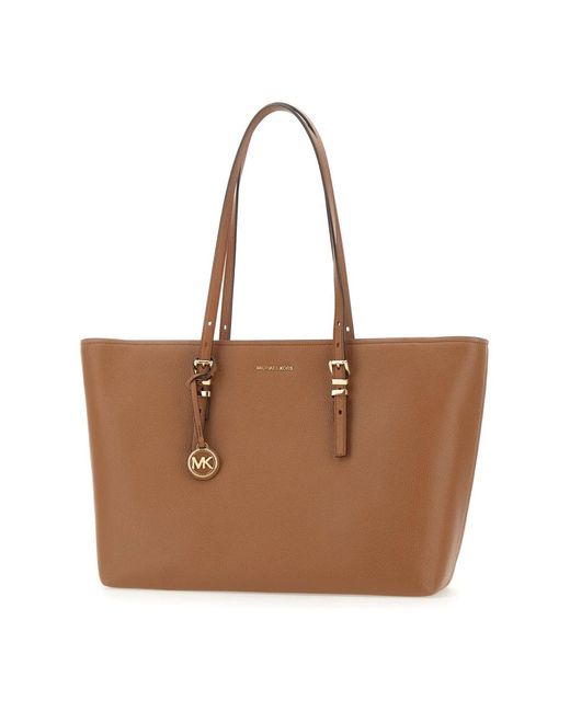Michael Michael Kors Quinn Tote is an elegant, roomy pebbled leather shoulder bag designed for everyday use, offering a spacious interior and secure top-zip closure. Key attributes: Brown | Pebbled leather | Spacious interior with multifunctional pockets | Top zip closure | Double 11-inch top handles | Back slip pocket | Embossed exterior logo | Gold-tone hardware | Polyester lining | Dimensions & fit: 47 x 27.9 x 13.3 cm | 11-inch top handles | Composition & care: Leather | Polyester Colour: brown