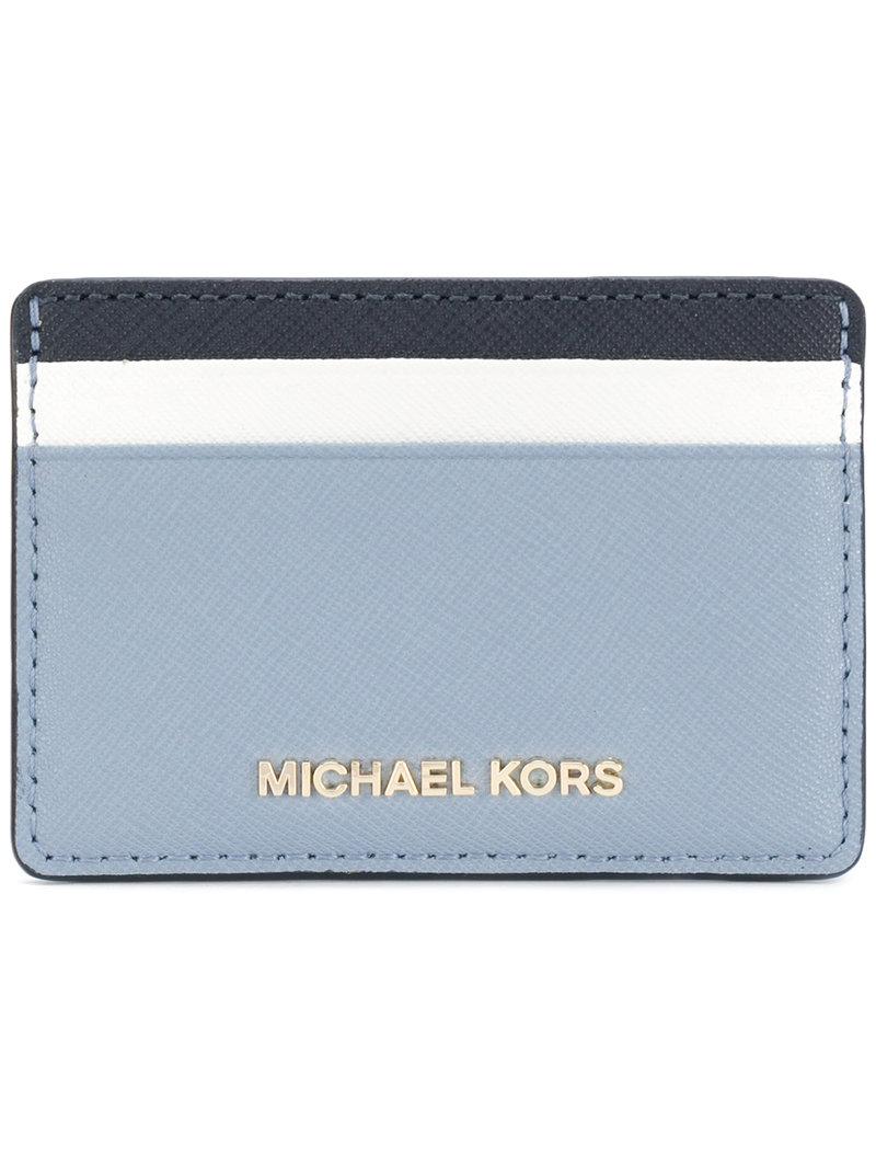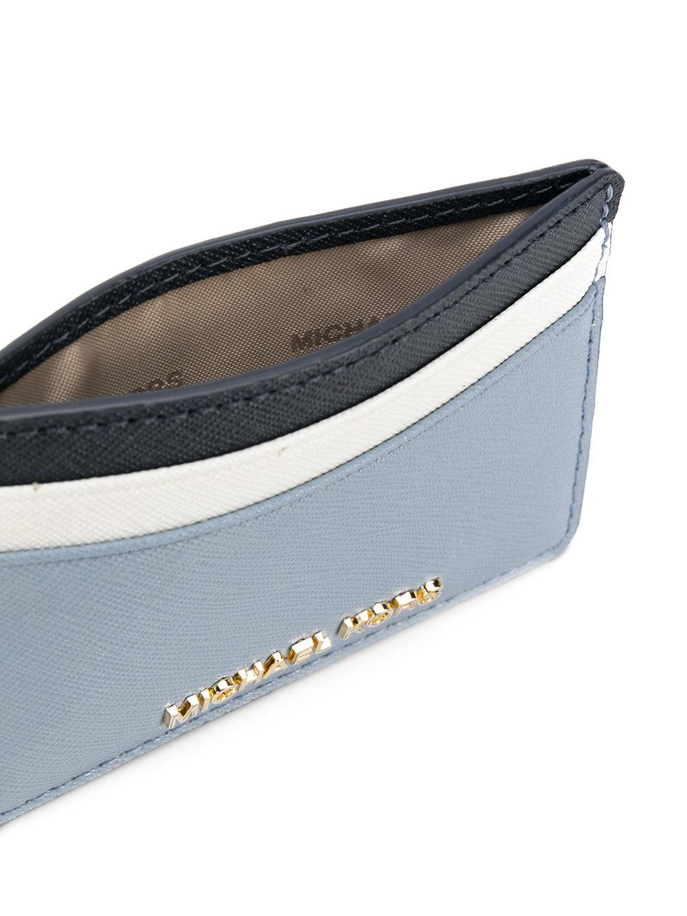 Go to FarfetchWhen it comes to Michael Kors, you can always count on the designer to have his finger on the pulse - his younger, more affordable Michael Michael Kors line being no exception. This blue leather Jet Set cardholder from Michael Michael Kors features multiple interior card slots and a gold-tone logo plaque. Material:Leather. Colour: blue