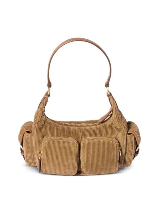 Brown corduroy leather handle front back zip pockets side flap pockets gold-tone hardware leather logo lettering Size: One Size. Gender: Female. Material:Cotton/Leather. Colour: brown