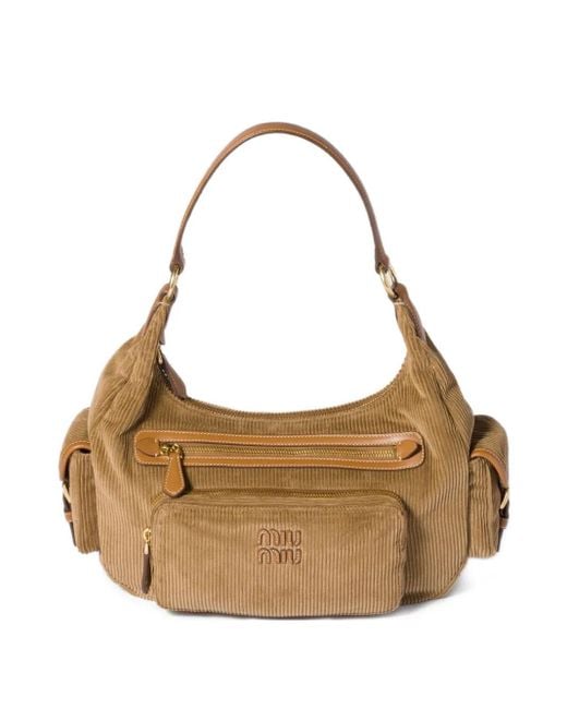 Brown corduroy texture nappa leather handle front pocket side flap pockets buckle detail gold-tone hardware Size: One Size. Gender: Female. Material:Leather/Cotton. Colour: brown