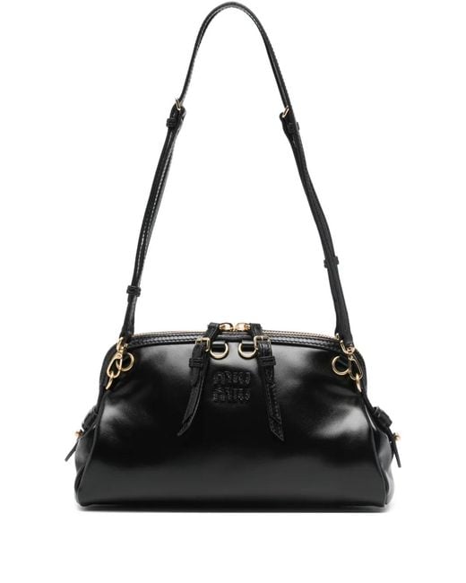 Black top handle gold-tone hardware embossed logo zip fastening adjustable shoulder strap Size: One Size. Gender: Female. Material:Calf Leather. Colour: black