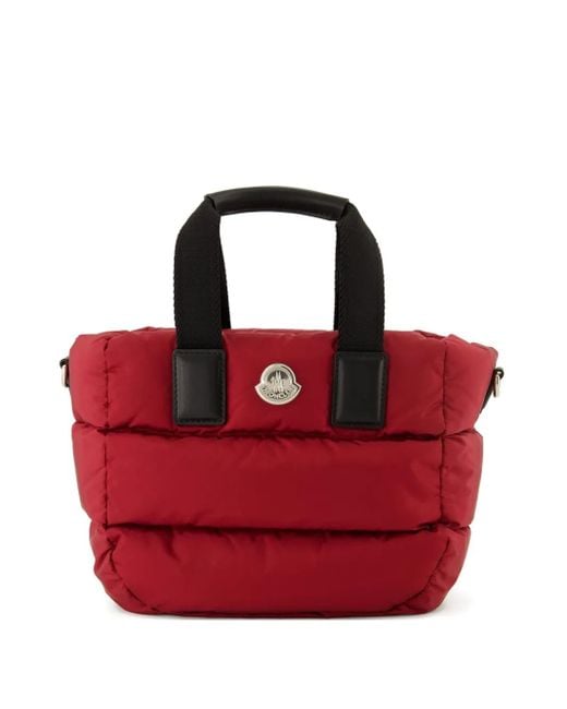 Red padded quilted design zip fastening top handles detachable shoulder strap leather trim Size: One Size. Gender: Female. Material:Nylon/Nylon/Leather. Colour: red