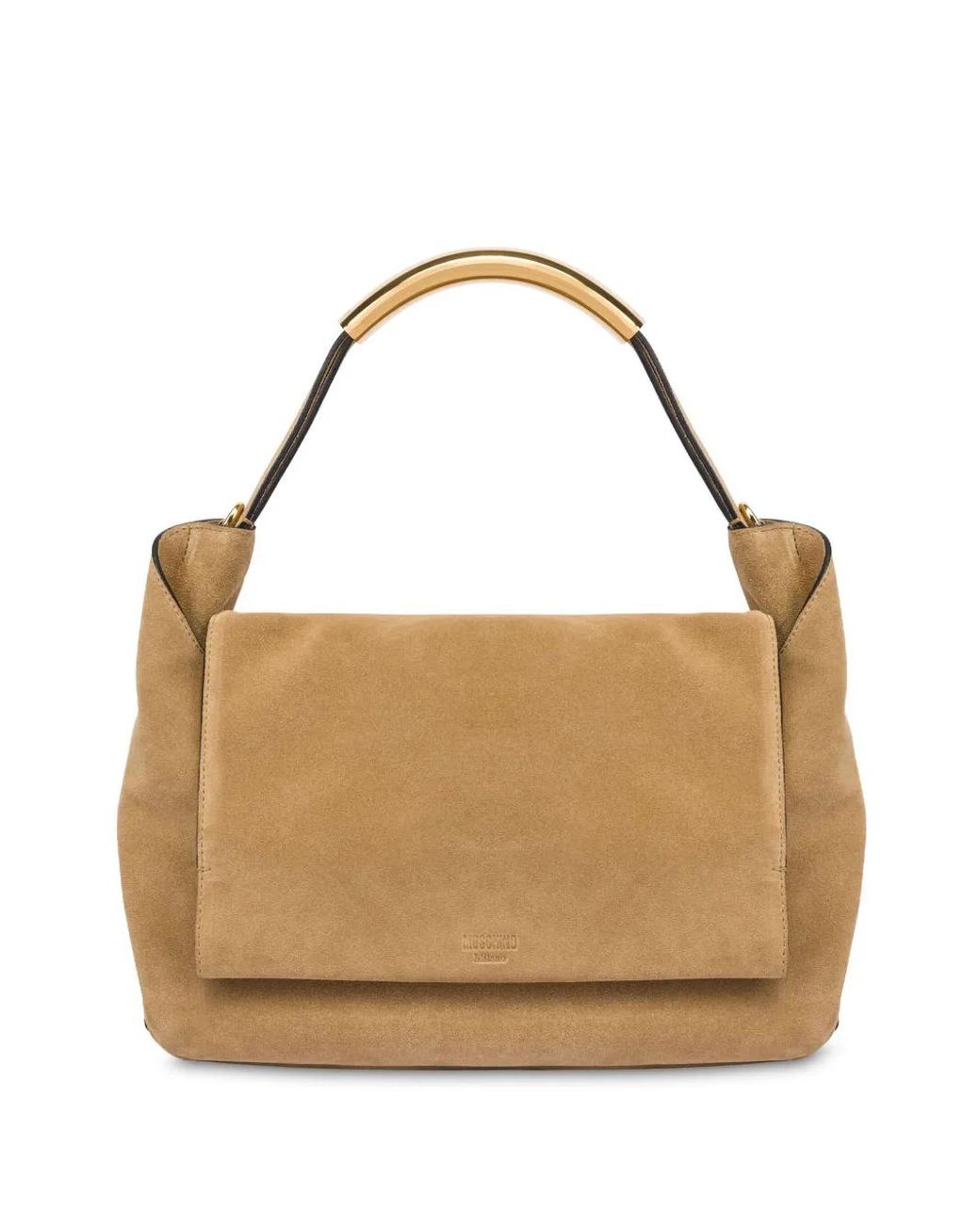Beige calf suede front flap closure single top handle detachable shoulder strap partitioned compartment internal zip-fastening pocket Size: One Size. Gender: Female. Material:Calf Suede. Colour: brown