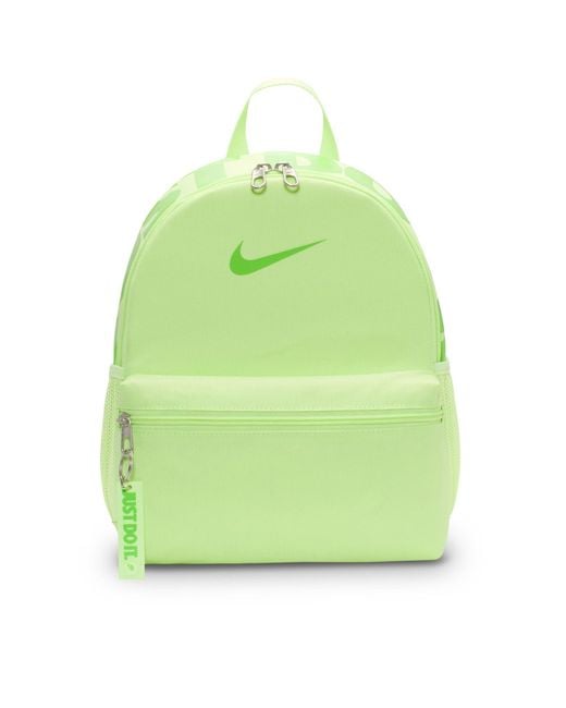 ## Nike Just Do It Mini Base Backpack Go hands free this season with the Mini Base Backpack from Nike. Crafted with padded shoulder straps and a fixed top handle, this piece is perfect for storing your valuables. Design is complete with a zip fastening main compartment and zip fastening front pocket. 26cm X 30cm X 12cm. Please note: The style you receive may vary from the image shown Colour: green