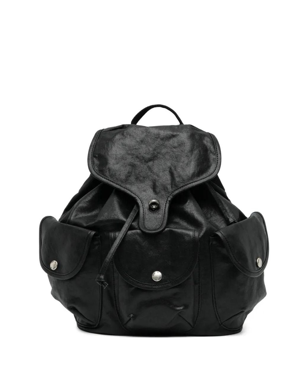 Black drawstring fastening adjustable shoulder straps three front flap pockets single top handle Size: One Size. Gender: Female. Material:Cotton/Polyester. Colour: black