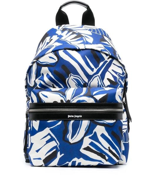 Blue cotton all-over graphic print logo print to the front front zip-fastening compartment top zip fastening main compartment single top handle adjustable shoulder straps Size: One Size. Gender: Male. Material:Polyester/Leather/Cotton.