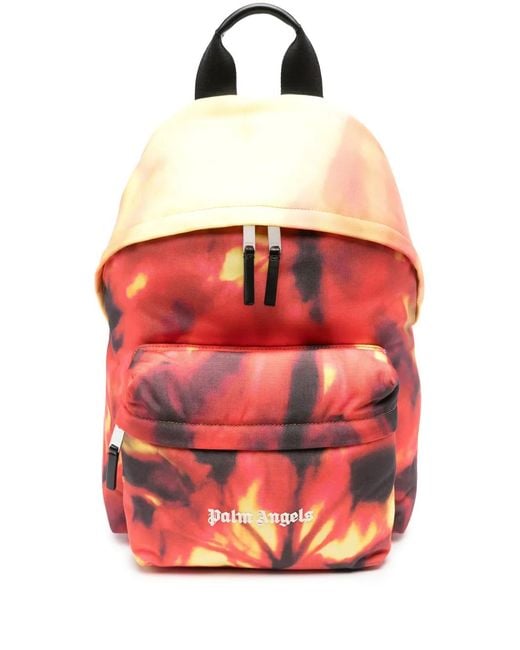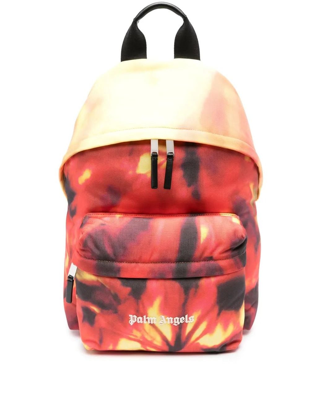 Light yellow/dark red canvas On Fire-print embroidered logo to the front front two-way zip fastening two padded adjustable shoulder straps single top handle leather trim front zip-fastening pocket main compartment internal logo patch cotton lining Size: One Size. Gender: Male. Material:Bovine Leather (top grain)/Cotton/Polyamide. Colour: red