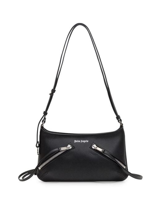 Black leather Giorgina bag from Palm Angels with two diagonal front zippers and contrasting printed logo. Adjustable shoulder strap, top zipper closure and silver metal details. Width:25Height:14Depth:4Gender: WomenMaterial: OUTSIDE:100% CALFSKINLINING:100% COTTONColor: BlackMade in: ItalyProduct ID: PWNN03EF25LEA001 1010*Import tax/duty will be calculated at checkout (If applicable) Colour: black