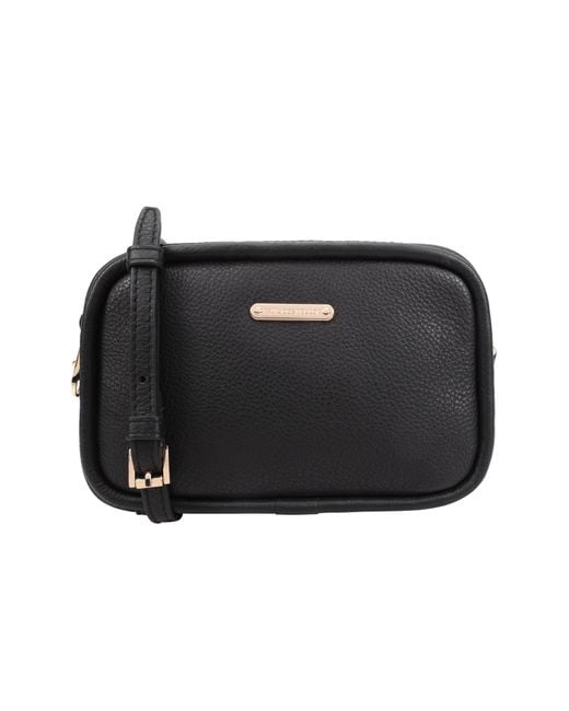 Compact and stylish, this small oval-shaped crossbody bag is crafted from premium grainy leather, offering both elegance and practicality. It features twin zipped compartments for easy organization, with an internal slip pocket on one side and convenient card slots on the other. The piped border adds a refined touch, while branded metal pullers and a sleek logo plate enhance its sophisticated appeal. A great value travel companion, perfect for keeping essentials secure and accessible on the go. D:7.8cm W:20cm H:12.5cm Colour: black