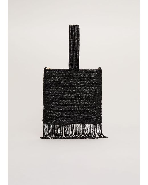 Women's Black Beaded Tassle Bag