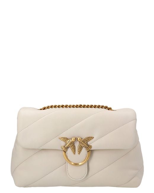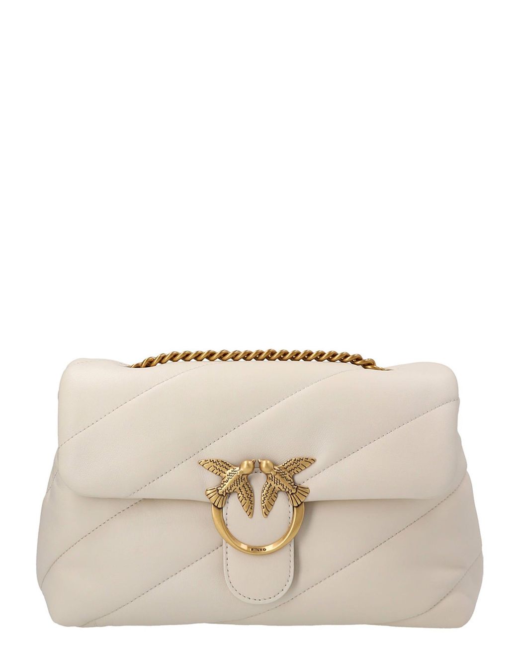 Shoulder bag. Chain shoulder strap with leather insert Front flap 'Love Birds Diamond. Cut' metal logo patch Magnetic button fastening Embroidered logo at the back One main internal compartment One internal zip fastening pocket Microfibre inner lining Diagonal maxi quilting Tonal stitching White Smooth leather Dimensions: 19x10x28 cm. Composition: 100% Leather.