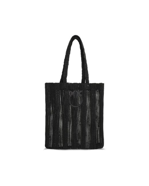 The medium Easy Tote Bag in raffia by Pinko is a stylish and lightweight summer accessory. Crafted entirely in raffia with a see-through woven effect, it features two long top handles for comfortable shoulder wear. The front is adorned with a large Love Birds embroidery, while a small logo embroidery on the back adds a distinctive and refined touch. Season: SS26Dimension: 34×39Composition: 100% Raffia. Colour: black
