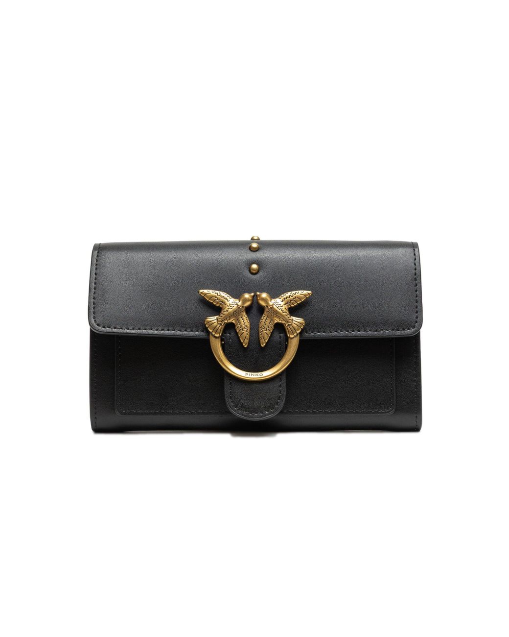 PINKOClassic Love Bag IconMade of soft silk-touch leatherClosure with leather tab and studsIconic Love Birds Diamond Cut metal buckleInterior lined with suede microfiberDivider with zip and wall pocketRemovable shoulder strap with round chain and adjustable leather shoulder padComposition:Leather: 100% COWHIDEOuter Fabric: 50% NYLON, 50% POLYURETHANELining: 100% COTTONMeasurement : Hx11cm, Lx19cm,Wx4cmÂ.
