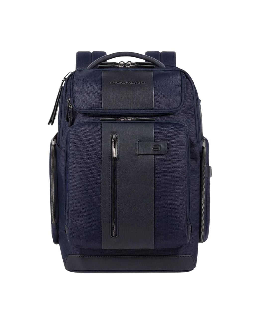 Piquadro Laptop and i Pad Backpack combines leather trims with durable nylon fabric and integrated USB/micro-USB ports for secure, connected daily commuting. It’s designed for organized storage, protection of devices and easy travel with a trolley attachment and anti-theft system. Key attributes: Blue | Leather and nylon | Rfid protection | Anti-theft system | Shock-absorbing laptop compartment | Induction charging / power bank pocket | Padded neoprene laptop sleeve (external) | Fixed i Pad holder | USB / micro-USB charging plate | Anti-theft cable system | Trolley attachment system | Foldable external bottle pocket | Detachable address tag | Thermoformed glasses case | Headphone loop and removable cable pouch | Pen and umbrella pockets | Internal cell phone pocket | Pocket for Air Pods® | Double zip closure | Vertical construction | Leather trimmings | Fixed top handle | Fixed shoulder protector | Dimensions & fit: 34.00 x 43.00 x 19.00 (cm) | Holds 15.6" notebook | Capacity: 29 L | One size | Composition & care: 100% Nylon | 100% Polyester | Leather (Bovine) | Fabric: clean with a damp sponge and mild soap; rinse and dab with a clean cloth. Do not immerse in water, do not dry clean or iron. Let dry naturally away from heat and reshape while drying. Leather: clean with neutral wax-based products applied with a soft cloth; do not use solvents. If wet, dab dry and avoid direct heat. Colour: blue