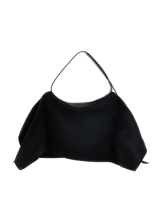 Enveloping square' shoulder bag with zip adjustable becomes flat when emptied Colour: black