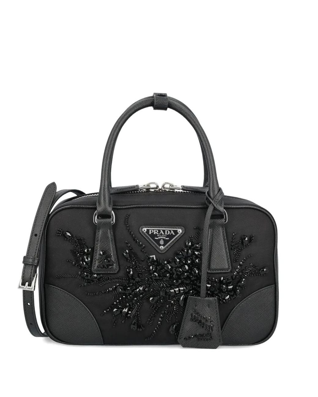 Black crystal embellishment two top handles zip fastening detachable shoulder strap rectangular shape Size: OS. Gender: Female. Material:Polyamide. Colour: black