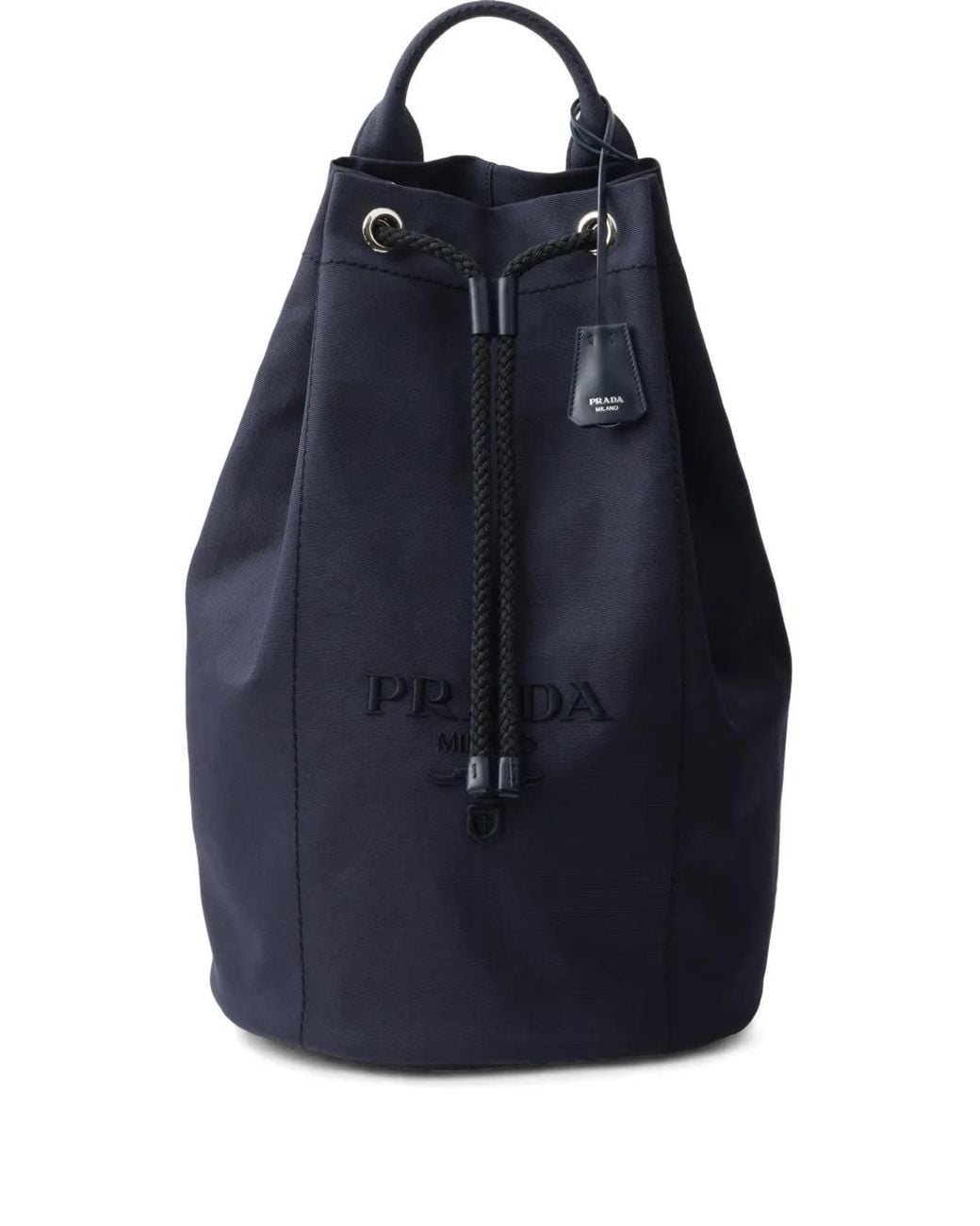 Navy blue logo detailing drawstring closure detachable and adjustable shoulder strap top handle internal zipper pocket Size: OS. Gender: Male. Material:Cotton/Leather/Canvas. Colour: blue