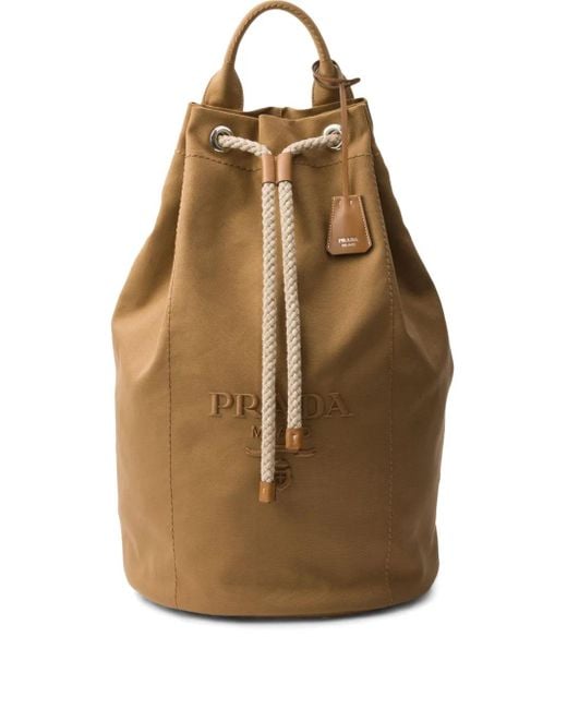Brown logo detailing rope drawstring closure single top handle detachable adjustable woven shoulder strap removable leather key ring main compartment Size: OS. Gender: Male. Material:Canvas/Cotton/Leather. Colour: natural