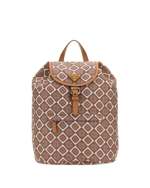 Brown geometric pattern adjustable shoulder-straps buckle fastening top handle Size: OS. Gender: Female. Material:Recycled Nylon. Colour: pink