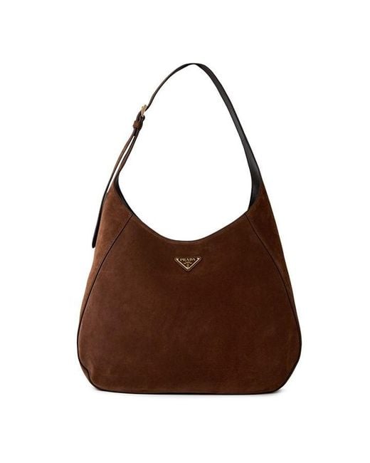 Women's Brown Logo Large Suede Shoulder Tote Bag