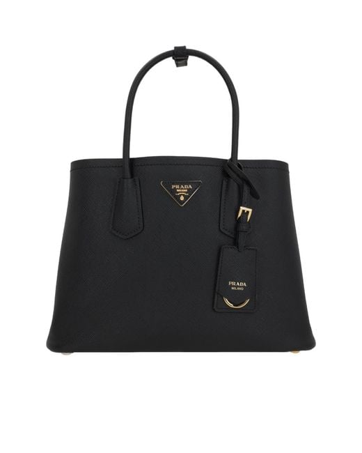 D tails du produit Delicate and refined details instill new life in iconic designs of the brand like the Prada Double handbag The tonal leather triangle frames the iconic metal lettering logo that gleams on the front while the detachable shoulder strap makes it possible to wear the accessory also as a cross-body or shoulder bag Code du produit 1BG887_2A4A_F0002_V_OOG Leather handles Detachable adjustable leather shoulder strap length 115 cm Maximum length 120 cm - Minimum length 110 cm - Maximum drop 55 cm - Minimum drop 50 cm Removable leather key ring Metal hardware Metal lettering logo on leather triangle on the front Snap closure on the sides Nappa leather interior with flap pocket With purse feet Import Taille 23cm Largeur 31cm Longueur 14cm Mati re principale Calfskin Colour: black