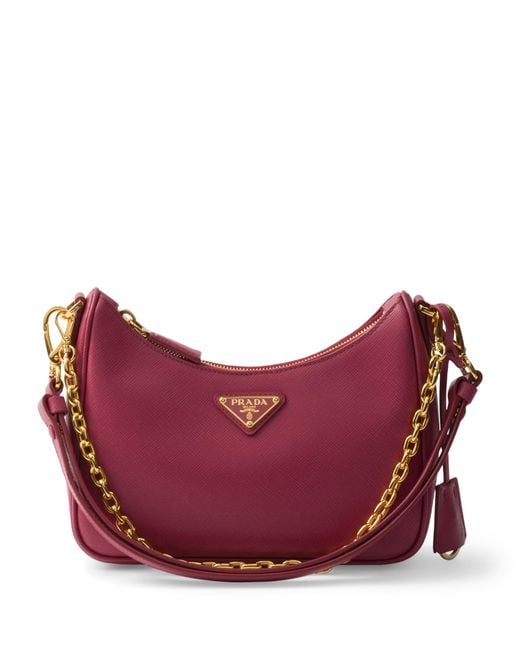 Women's Purple Mini Saffiano Leather Re-Edition Shoulder Bag