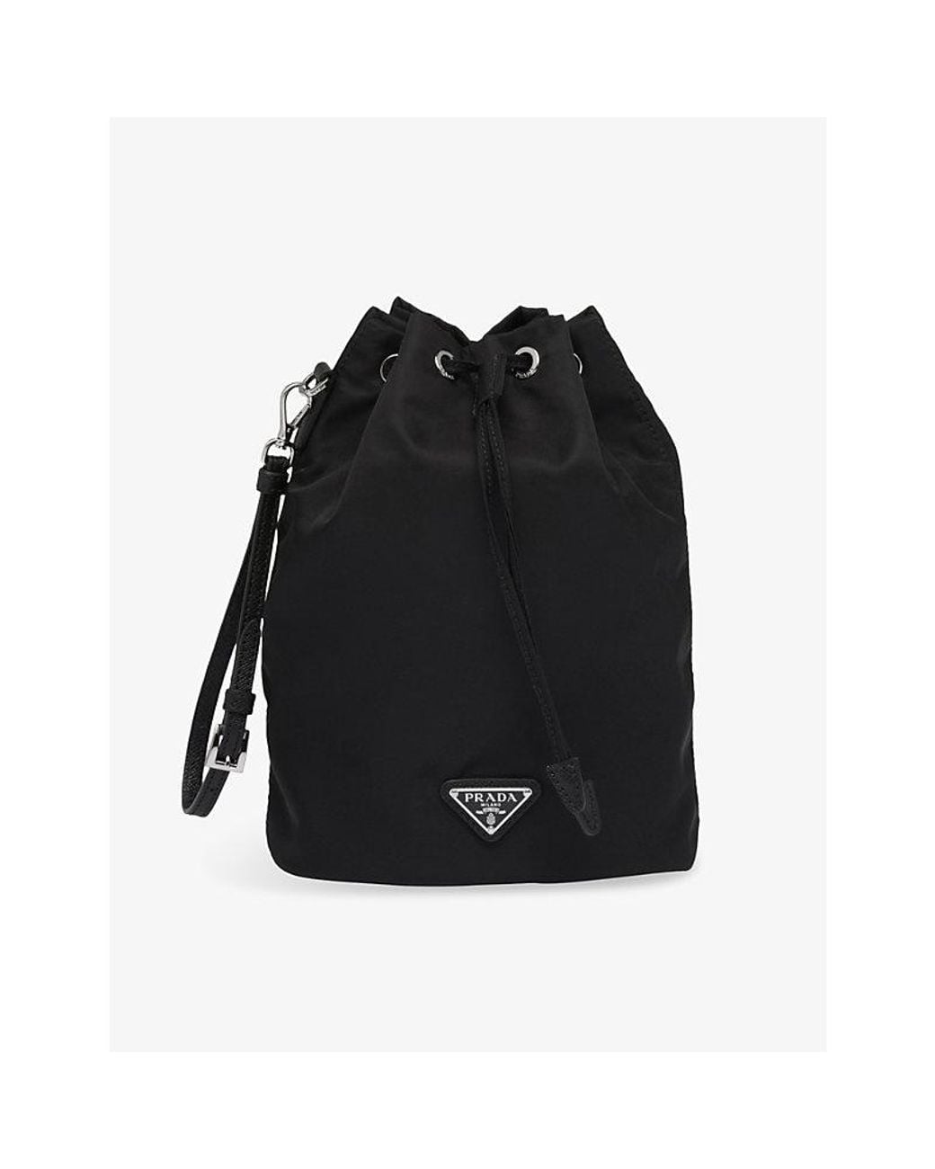Prada woven pouch100% polyamideZip fasteningCompact pouch, enamelled metal triangle logo on front, one main compartment, gold-tone hardwareWipe with a clean, dry clothMade in Italy Colour: black